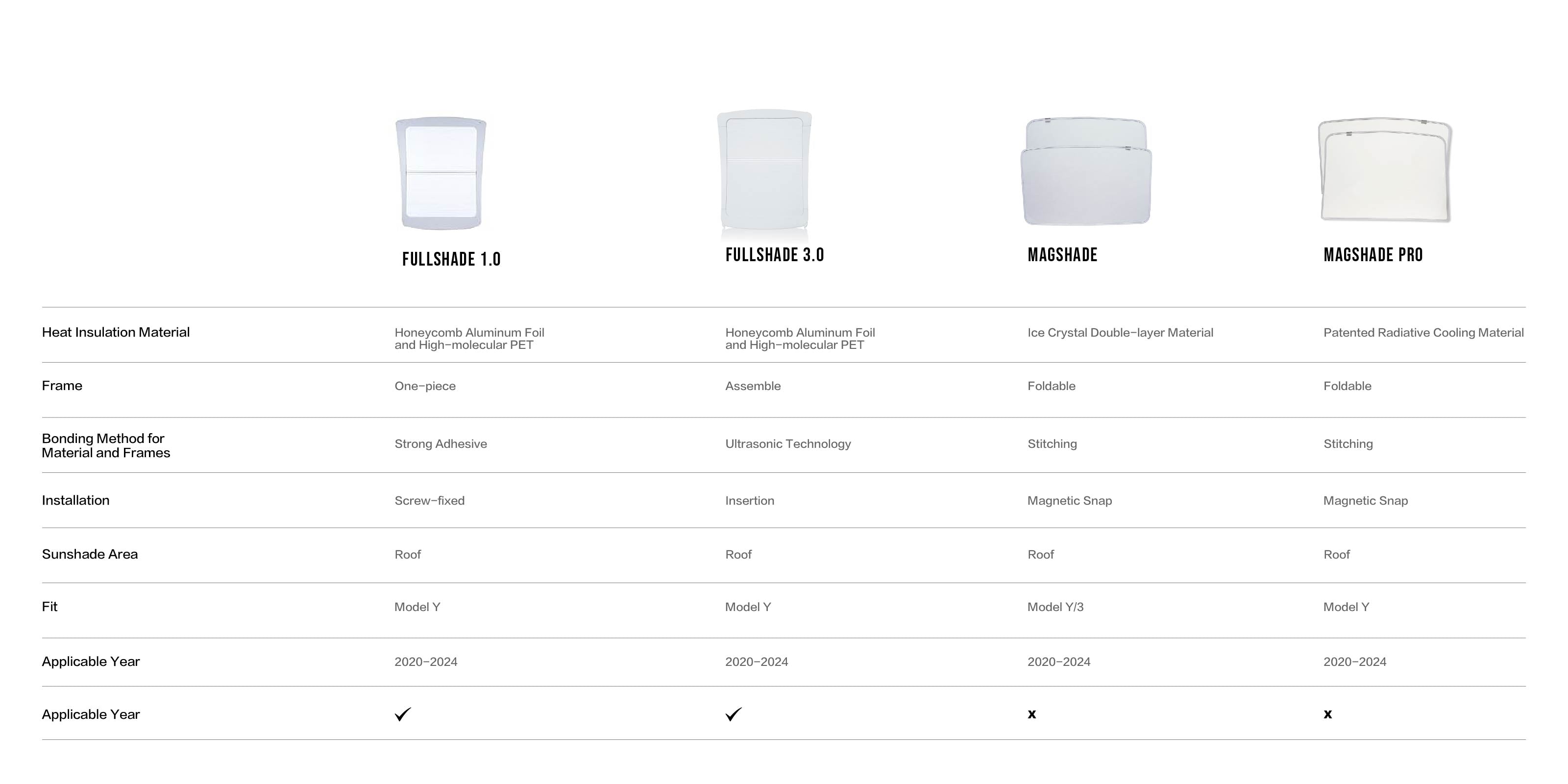 FullShade integrates into the car roof perfectly with a nice appearance and a perfect fit. The frame body is curved to match the roof shape. No sag, blends flawlessly.