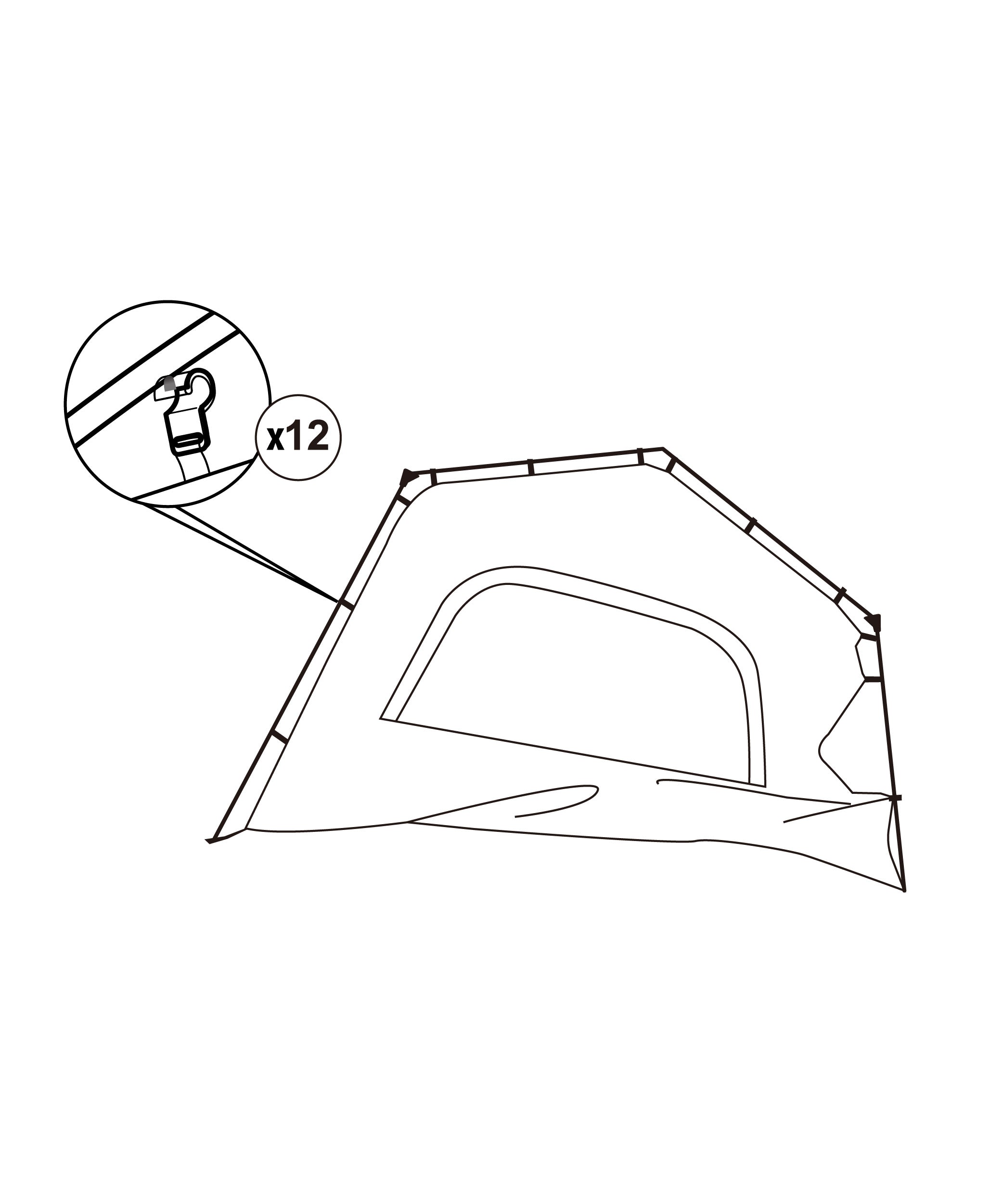 Insert the pole tips into the plastic chips located at the tent corners, turn and secure them.