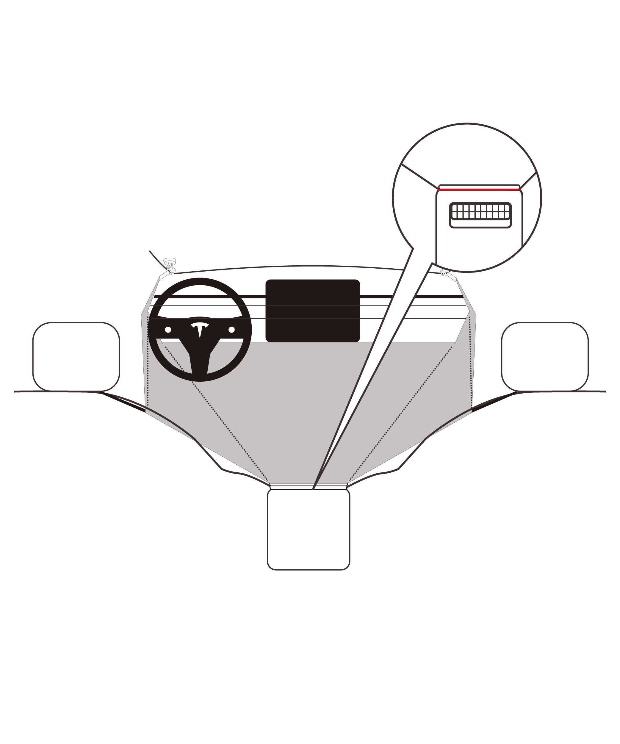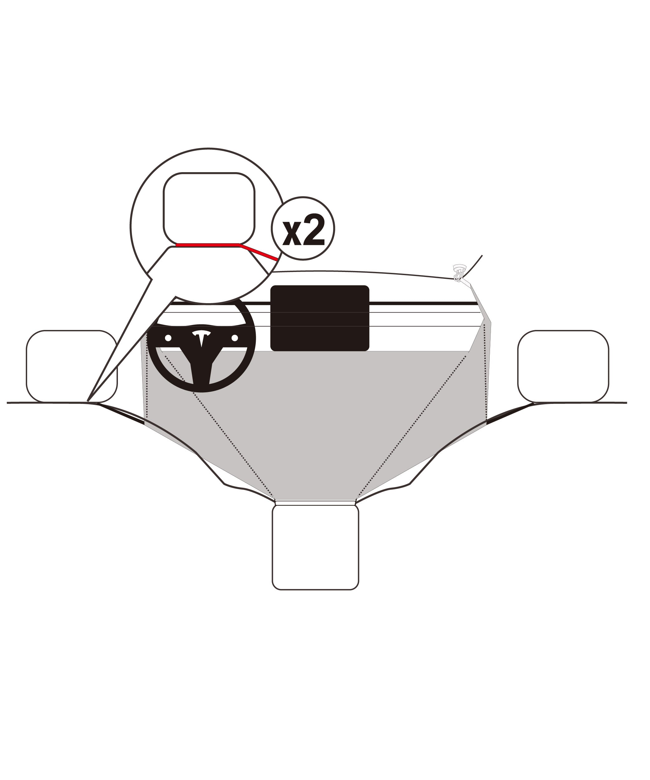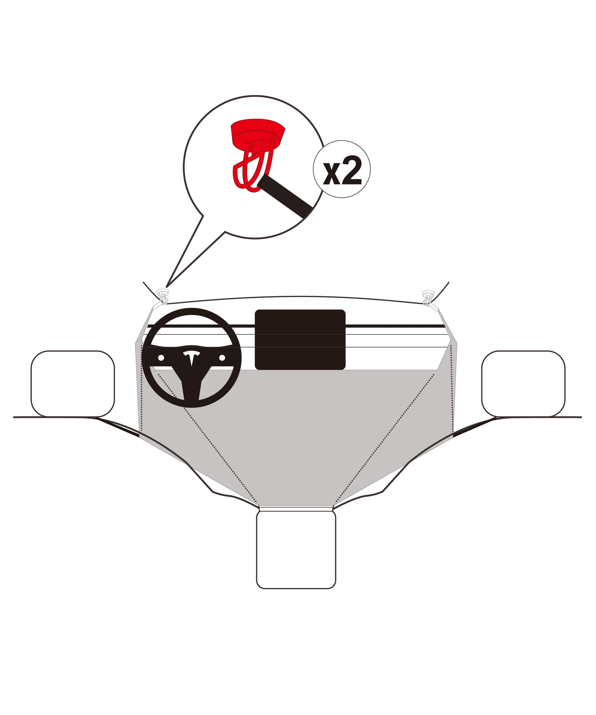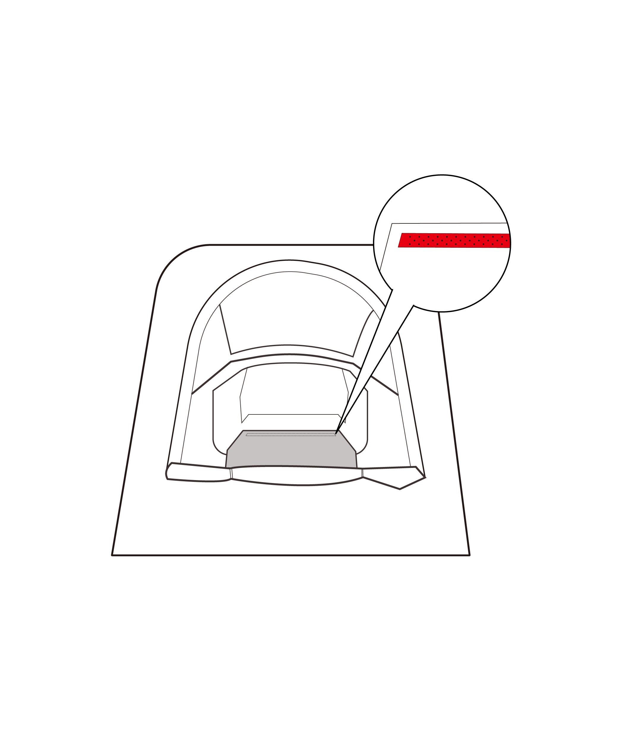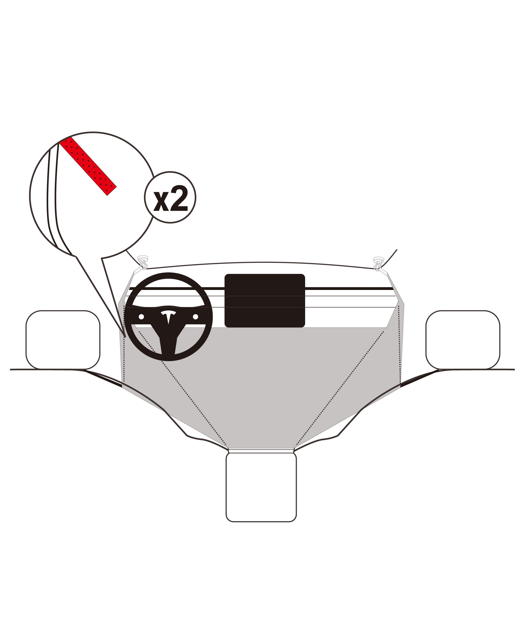 Secure the elastic seam under the center console and adhere the Velcro to the side wall at the corner.