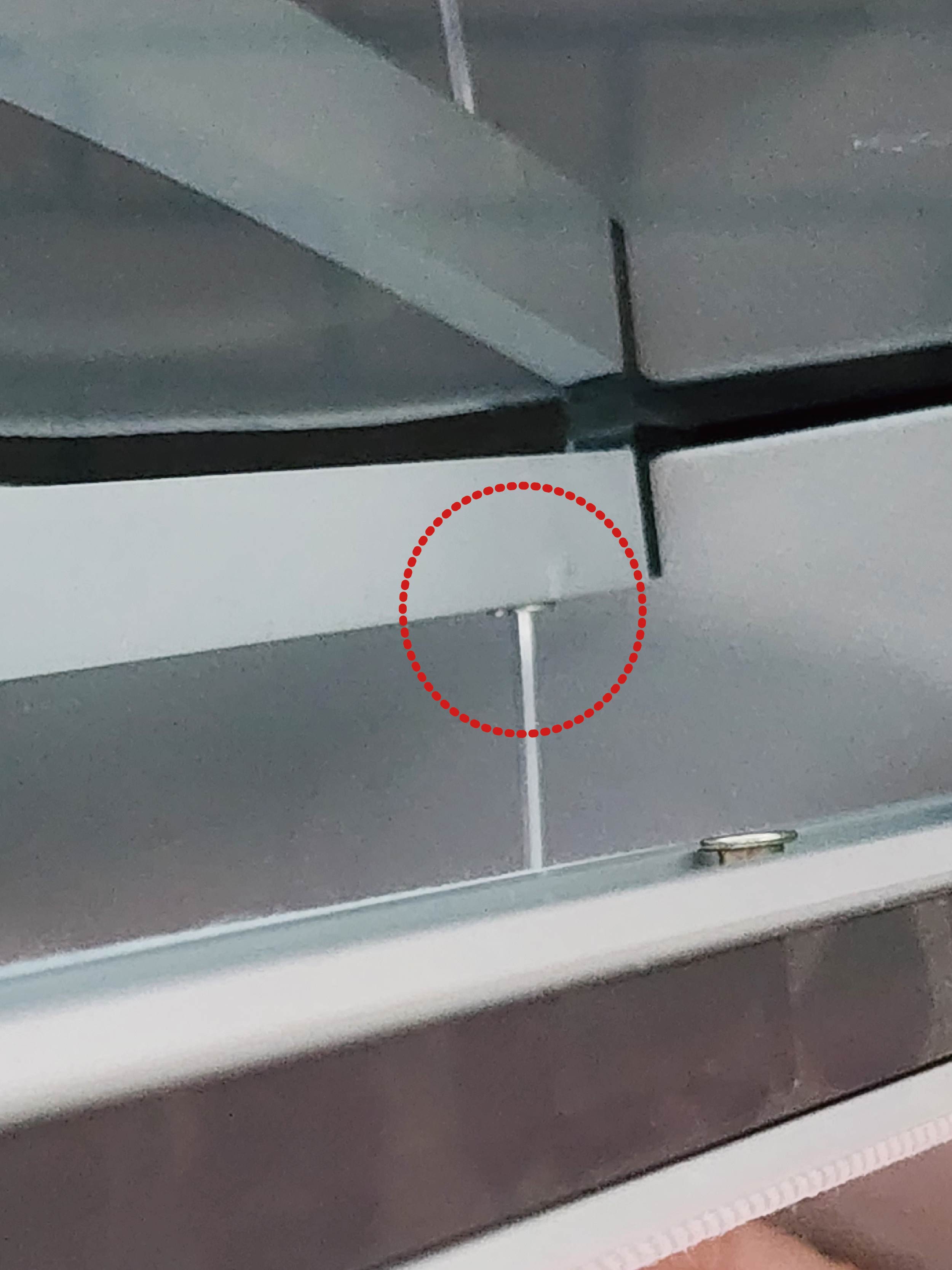 Through the reserved hole at the rear of the sunshade, locate the screw hole on the aluminum rod. Adjust position of the rod when necessary, until it perfectly sits behind the sunshade's aluminum frame when the sunshade is lifted.