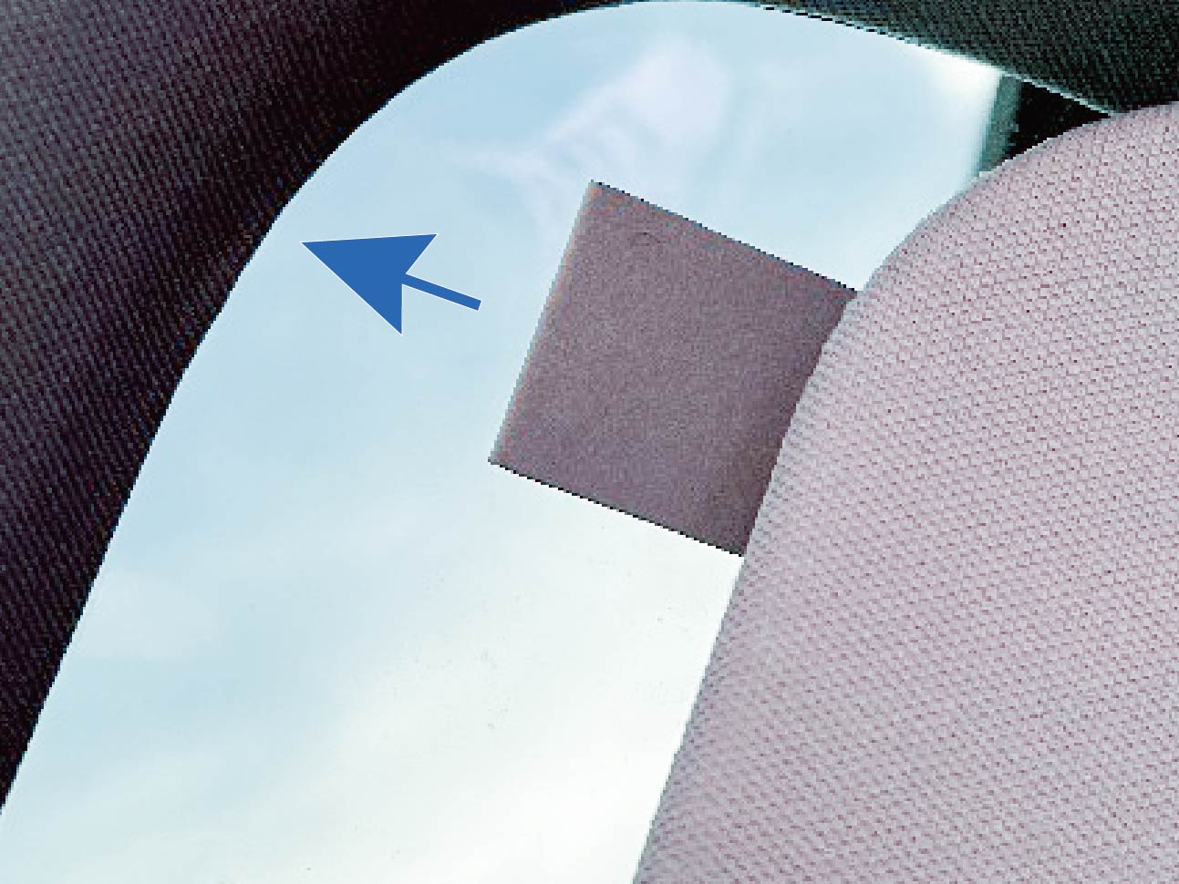 Fasten both 3M glue pads to the rear end of the sunshade.