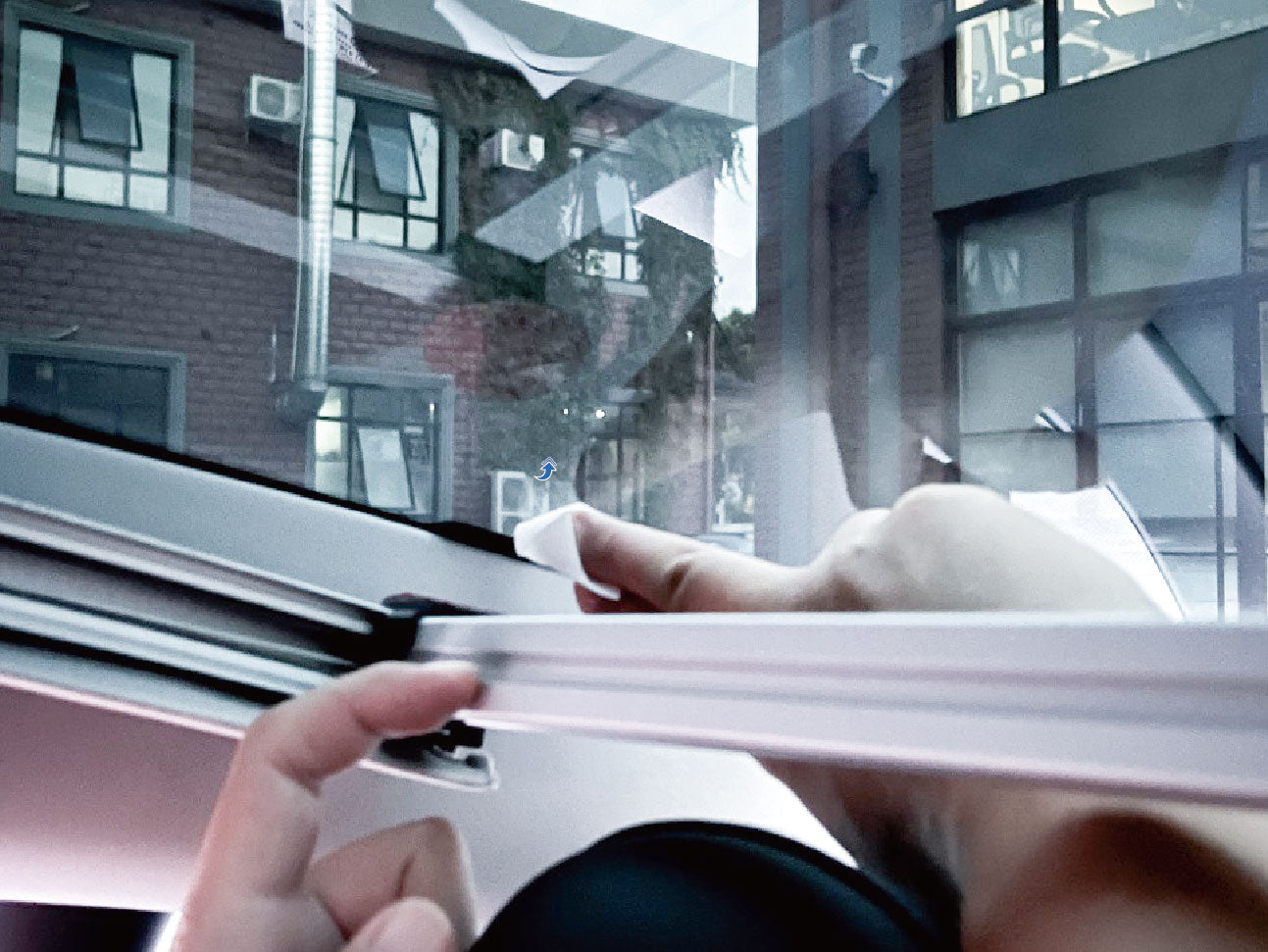 Push both sides of the sunshade close to the rear glass roof to find the area where 3M glue pad will stick to the glass. Use adhesion promoting wipe to wipe that area. Repeat to wipe both sides.