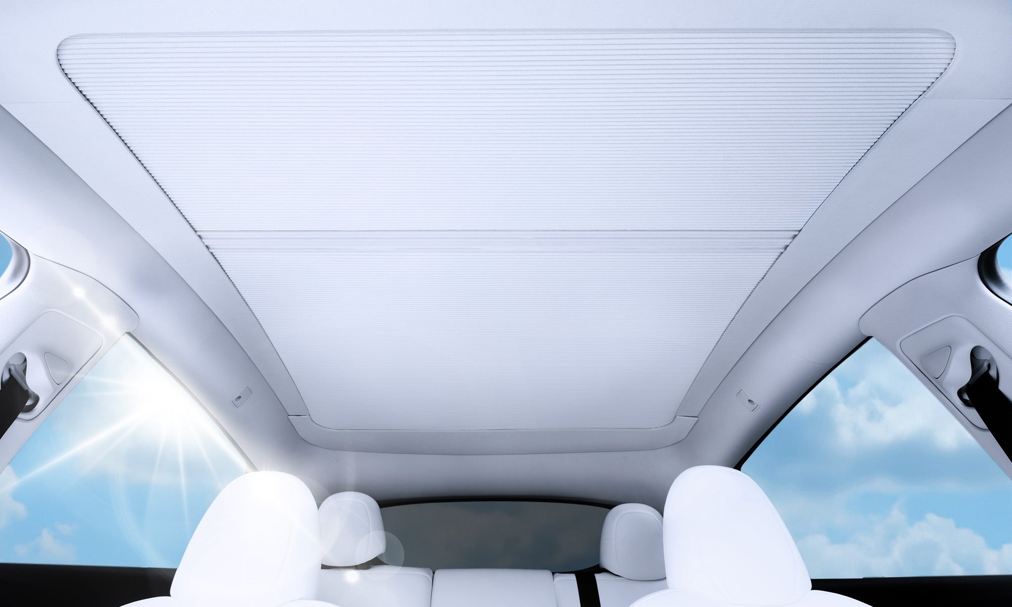 FullShade integrates into the car roof perfectly with a nice appearance and a perfect fit. The frame body is curved to match the roof shape. No sag, blends flawlessly.